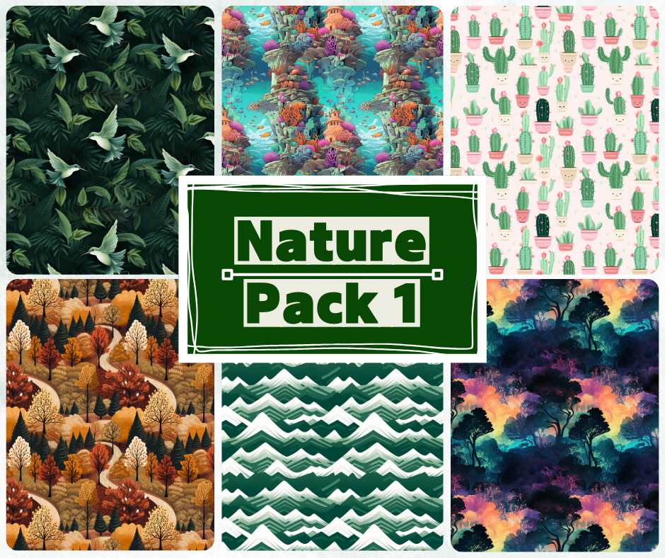 Unleash your creativity with Nature Pack 1. 45 digitally produced patterns by AI. Gain instant access to high-quality patterns that will improve graphic, textile, or web designs and many more. Save your time with these commercially available patterns.