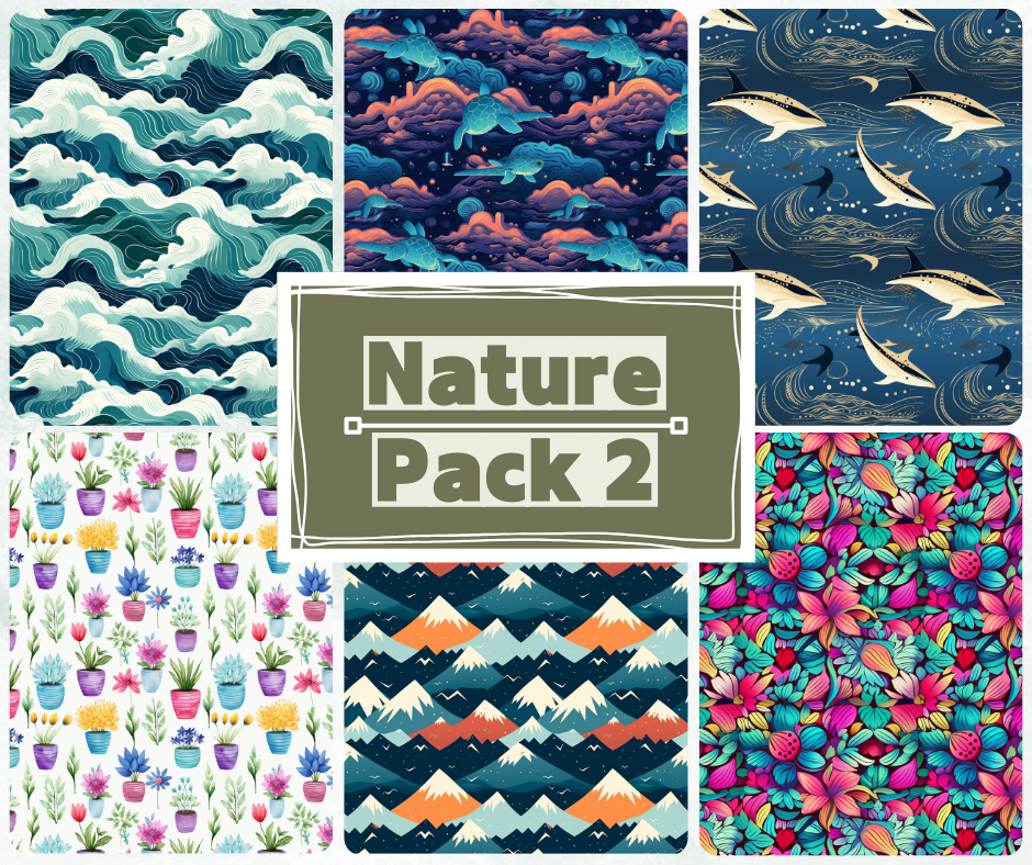 Unleash your creativity with Nature Pack 2. 45 digitally produced patterns by AI. Gain instant access to high-quality patterns that will improve graphic, textile, or web designs and many more. Save your time with these commercially available patterns.